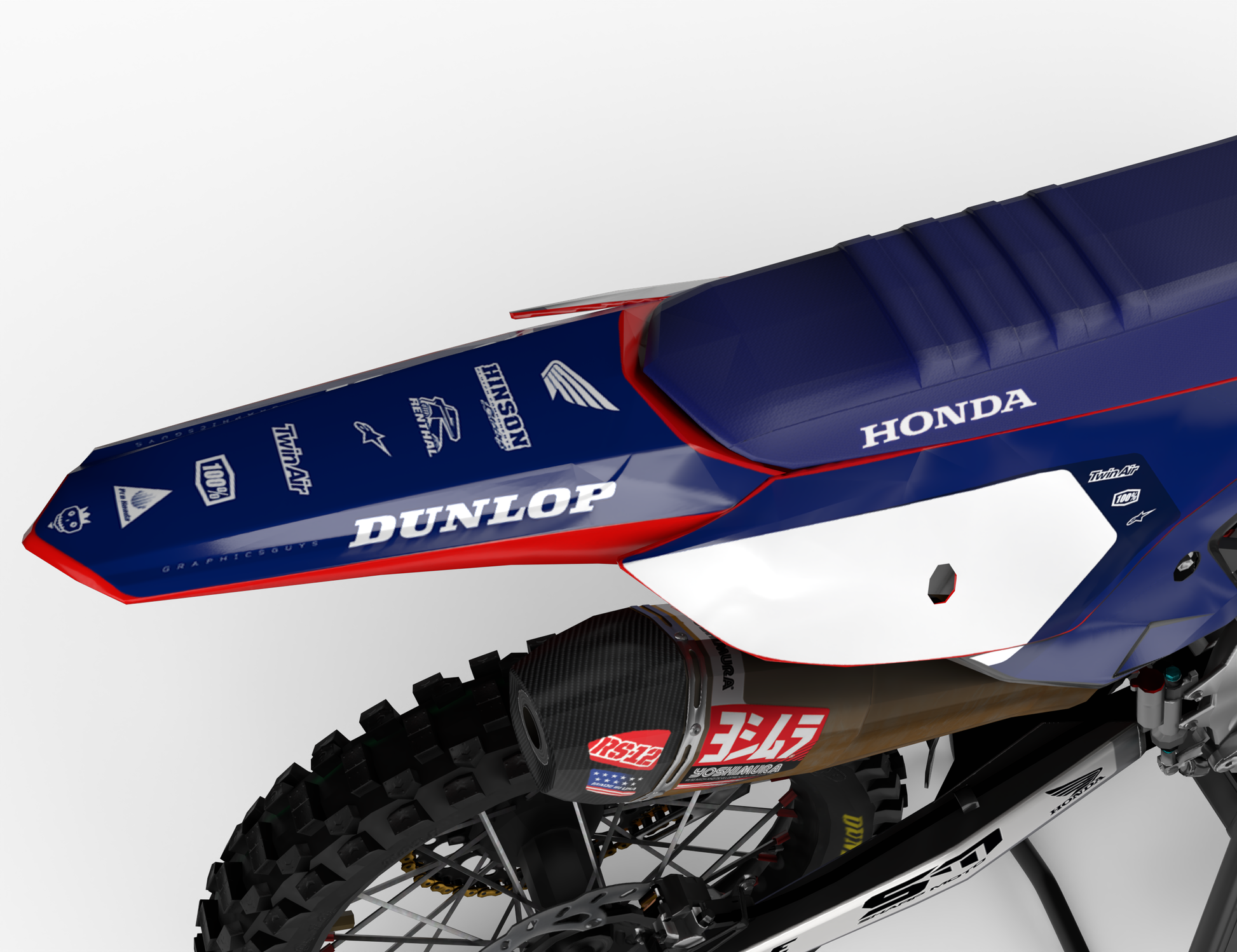 KIT INCLUDES: The Full Graphics Kit from Graphics Guys includes printed graphics for motorcycle parts: Tank Shrouds / Fuel Tanks, Side Number Plates, Airbox, Rear Fender, Front Fender, Front Number Plate Fork Guards, and Swingarms. (Please note that the contents may vary depending on the model you select.)